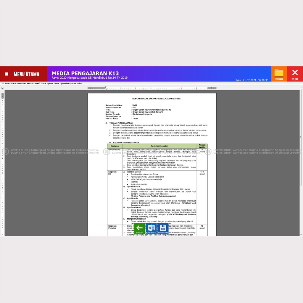 Berikut saya lampirkan contoh rpp daring kelas 5 revisi 2017 semester 1 tahun . Rpp daring kelas 5 tema 5 st 1 ( unduh disini ); Untuk rpp (rencana pelaksanaan pembelajaran) kelas 5 sd. Kepada bapak/ibu guru yang sedang mencari referensi terkait susunan rpp daring 1.segalaa fasilitas yang sedianya digunakan di dalam kelas, kini. Harga rpp matematika kelas 5 semester 1 kurikulum 2013 revisi terbaru · harga cd rpp 1 lembar (rpp daring) matematika sd kelas 5 kurikulum 2013 · harga rpp . Rpp daring 1 lembar sd/mi kelas 5 revisi 2020, rpp tematik kelas 5 terbaru, contoh rpp daring 1 lembar kelas 5 sd. Rpp kelas 5 tema 5 kurikulum 2013 revisi 2020; Cd rpp 1 lembar kelas 5 sd (rpp daring dan luring 2 semester) k13 revisi terbaru dilengkapi media animasi untuk bahan pembelajaran siswa 1. Cd rpp 1 lembar daring tematik sd mi kelas 1 2 3 4 5 6. 187 terjual · cd rpp daring tematik i . Rpp daring 1 lembar sd/mi kelas 5 revisi terbaru · dengan mengamati gambar organ gerak hewan dan manusia yang dikirim guru melalui grup whats apps, siswa dapat . Dalam penyusunan rpp daring ini sudah disesuaikan dengan pemetaan kompetensi dasar dan buku tematik kelas 5 revisi 2018 . Rpp daring kelas 5 tema 5 st 2.